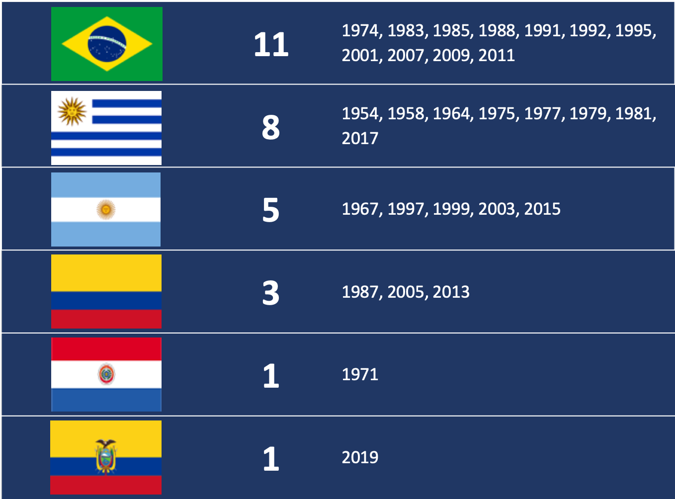 El campeonato sudamericano sub-20, es un torneo organizado por la Conmebol que se ha jugado desde el año de 1954, donde Venezuela hizo de país anfitrión. Hasta la actualidad se han jugado 29 campeonatos, siendo 6 países los que han alcanzado el primero lugar de este torneo juvenil.